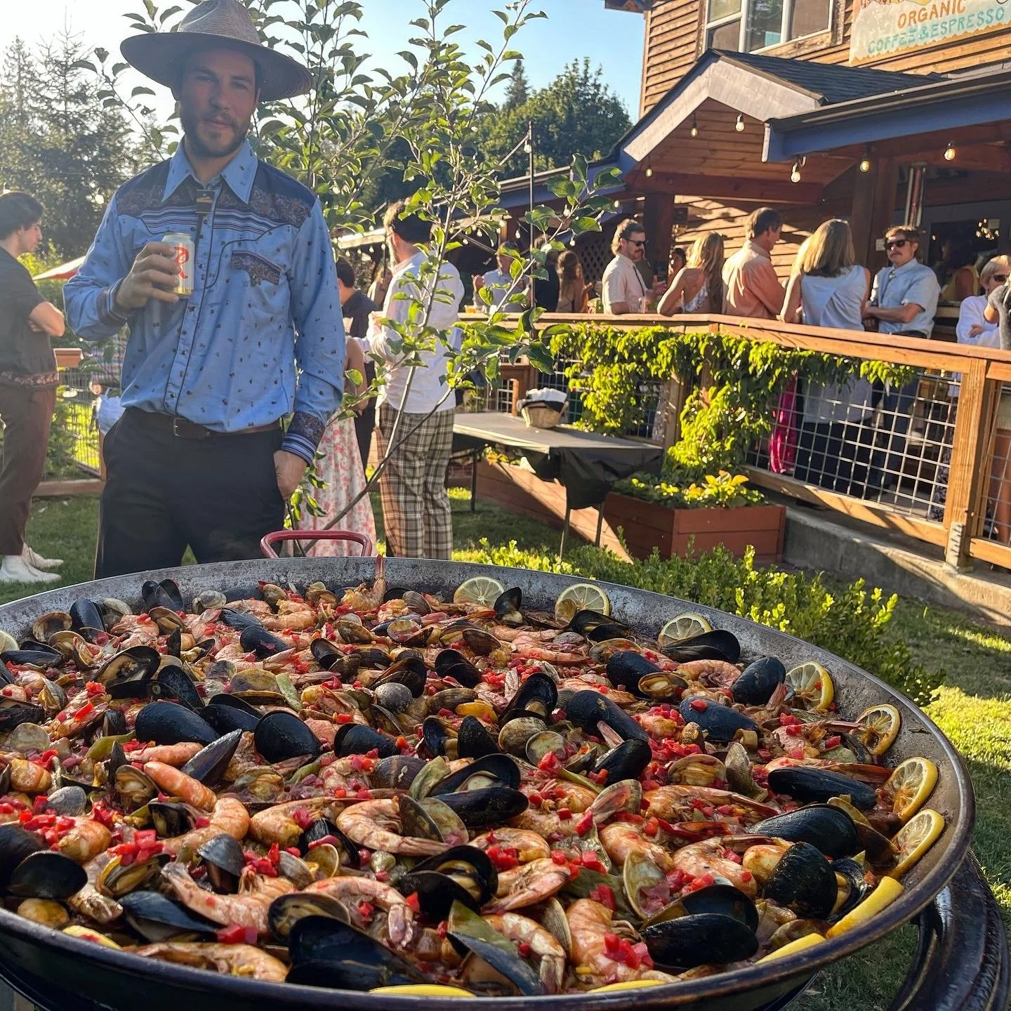 Serving the traditional Spanish rice dish with chorizo, chicken, shellfish & seasonal vegetables.
